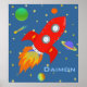 Personalise this space themed poster with your child's name on it. Bright and colourful, it's a great addition to any child's room. Original artwork by Night Owl's Menagerie, 2010.