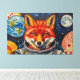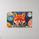 This vibrant artwork by Otis Porritt presents a striking fox, rendered with rich, textured strokes, peering confidently from within an astronaut's helmet. The fox's orange and white fur contrasts with the deep blue of its visor and the bold red of its space suit, complete with an American flag patch. Behind the intrepid explorer, a swirling cosmos bursts with vivid blues, purples, and oranges, dotted with celestial bodies, including a prominent moon. The dynamic, painterly style gives the digital medium a tactile quality, bringing the cosmic scene to life.