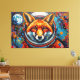 This vibrant artwork by Otis Porritt presents a striking fox, rendered with rich, textured strokes, peering confidently from within an astronaut's helmet. The fox's orange and white fur contrasts with the deep blue of its visor and the bold red of its space suit, complete with an American flag patch. Behind the intrepid explorer, a swirling cosmos bursts with vivid blues, purples, and oranges, dotted with celestial bodies, including a prominent moon. The dynamic, painterly style gives the digital medium a tactile quality, bringing the cosmic scene to life.