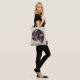 Space tote bag with an abstract astronomical illustration with galaxy shaped as a snail shell with bright stars and planets resembling beach balls. Ink drawing of a total nonsense, imagining a funny universe. This cool space related astronomical design has a customisable background.