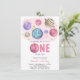 Magical galaxy outer space themed birthday invitation. Planets and stars in pink, purple, gold colorway.
