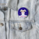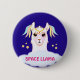 Space llama button. This space llama is decorated with jewels and ribbons on indigo blue background. Text can be personalised.