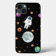 Black space iPhone case with astronaut, planets and stars in background.