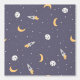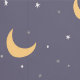 Cute and funny space design with colourful moons, rockets, planets and stars on a blue purple background. Perfect for a boys room, nursery or a playroom.