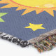 A quality printed throw has its advantages. This is a much finer weave throw than its loopier cousins, and though lighter, it is worth the investment for custom room accessorizing. The back is much prettier than the typical brown, and the fringe on the long sides very vivid, the selvage nicely done. Before photographing, I washed the throw in cold water, delicate, with a thicker woven throw the same size. On tumble dry low, this throw was dry in half the time as the other. This is a very practical quality if you use throws for furniture covers or to wrap up in frequently. The sleekness of the fabric makes it a great layer for accenting or protecting without the feeling of sitting on too much stuff. Perfect for napping or when you feel a light chill coming on. The color printing is beautiful and on this fabric, matched the design and color of my Photoshop image. This is an advantage for blending room fabrics and colors. The fringe on the short sides prints the colors from the design image and therefore varies from the side fringe. I streaked a white fractal line through the plaid pattern to give the illusion of weaving. This printed as crisp as an illusory thread, and put some white in the short side fringe, showing another advantage of print vs loomed- for artistic purposes, line lines, detail, and color integrity can be planned and preserved. My loomed throws have color limitations and more of a needlepoint texture. Print throws reproduce an exact image. The throw felt a little stiff straight out of the package, but this went away in the first delicate wash. Of course I searched the wash water for ink or bleeding and there was none.