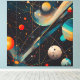Transform any room with this vibrant canevas featuring a retro-futuristic depiction of planets, moons, and colourful cosmic orbits. The intricate space design captures the wonder of astronomy, making it a perfect centerpiece for living rooms, bedrooms, home offices, or creative studios. The artwork uses vivid colours and geometric orbit lines, giving a unique, modern touch to your decor. This design is also ideal for other products like throw pillows, wall art, or apparel if you want to bring a cohesive space-inspired style throughout your home or business.