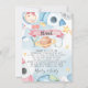 Show your appreciation with this Outer Space Planet Houston We Have a Girl, baby shower thank you card! This collection features adorable watercolor space themed graphics including astronauts, planets, shooting stars, rocket ships, and flying saucers placed on a blue watercolor background.