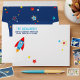 Outer space rocket invitation envelopes with return address on front and star galaxy envelope inside / envelope liner.