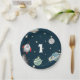 Outer space theme paper plates for your kid's first birthday celebration. The illustration has some planets, stars and a rocket. Illustrated and designed by Patricia Alvarez.