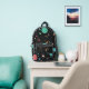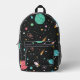 Space Ships and Planets on Black Printed Backpack