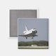 Space Shuttle Discovery approaches landing on the runway at the Kennedy Space Centre featured with tarmac.