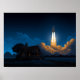 Space Shuttle Rocket Launch At Night Behind Farmho Poster