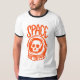 Great T-Shirt, looks cool, good thickness and fits well. Slightly lighter than expected, not pitch black, more of a faded black, but still looks good.