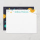 Personalised note card featuring planets, stars, meteorites and constellations.