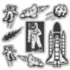 Space themed contour stickers from Ricaso - featuring a spaceman, space rockets, meteors and more