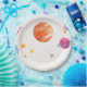 This space-themed set of paper plates features various planets, stars (including shooting stars), and clouds. A celestial, space exploration aesthetic design with a light background, designed to match a similar invitation and napkins. Other variations available!
