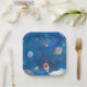 This blue space-themed aesthetic napkin set features various planets, stars, a rocket, asteroids, meteors, and even a UFO!