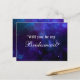 Modern "Will you be my bridesmaid?" card with space and stars.