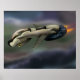 Spacecraft flying through a planet poster