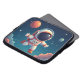 This is a laptop bag containing an astronaut wandering in space.