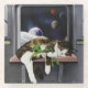 Spaceship Cat Sci-Fi Cute Glass Coaster