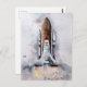 Spaceship Takeoff To Outer Space Watercolor Postcard