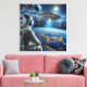 Ufology outer space wrapped canvas wall art. Ai illustration of an astronaut watching UFOs flying in space over the earth.