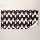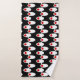 This towel set has a white washcloth, a red hand towel, and a bath towel with a mid-century modern design of white ovals with red circles connected by white lines on a field of black. Want different colours? Message me.