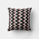 This throw pillow has a mid-century modern design of white ovals with red circles connected by white lines on a field of black. Want different colours? Message me.