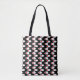This tote bag has a mid-century modern design of white ovals with red circles connected by white lines on a field of black. Want different colours? Message me.
