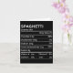 Spaghetti Nutrition Facts Funny Thanksgiving Nutri Card
