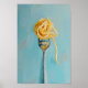 Illustration of spaghetti pasta on fork with a blue background. Great for kitchen wall art decor or Italian dinning room decor!