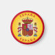 Very pleasant design showing the coat of arms of Spain within a circle shape made of the national colours.