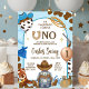 Spanish Blue Cowboy Boy First Birthday Invitation, Un Vaquerito Cumple Uno Invite, Editable invitación de primer cumpleaños