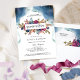 Unique quinceañera invitation n Spanish with exquisite watercolor stains creating a celestial frame encasing your quinceanera details, and beautiful bohemian floral on the centre in a graceful blend of blue, navy, turquoise teal, purple, fuchsia, mustard and golden hues. Same invitation also available in English. Wording with quinceañera's parents names on top which can be changed to "please join us to celebrate" instead. Also ability to add mass and reception details or change to reception and dance details. Modern hand written calligraphy details. Back with attractive watercolor stains, corner floral detail and quinceañera's name over golden number 15. Part of our "Mystic Garden Celestial" collection with a variety of coordinating products available.