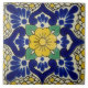 Spanish flower design with blue and yellow elements in the ceramic tile pattern.