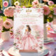 Elegant Pink Princess Dress Floral Blossoms Mis Quince Invitation