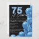 Spanish Bright Blue Balloons Black 75th Birthday Invitation
