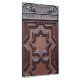 Finished polished dark oak door to Spanish mediaeval church with inlays and latin above.