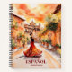 Immerse yourself in the beauty of Spanish culture with this stunning binder, perfect for organising your Spanish language materials or any other documents. The cover features a captivating scene of a woman in a flowing red dress strolling down a charming cobblestone street, lined with golden autumn trees. The warm, glowing sunset sky and the ornate building in the background add a touch of elegance and nostalgia.