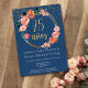 Celebrate her 75th birthday with elegance using this sophisticated blue and gold invitation in Spanish. The design features a refined Aegean blue background, adorned with a circular floral frame that includes delicate pink flowers and golden details. In the centre, "75 años" stands out in gold calligraphy, complemented by shimmering glitter falling from above. Fully customisable, this invitation is available in both printable and digital formats, making it easy to share via text, email, or social media. Ideal for marking a special milestone, this chic and feminine invitation will make her 75th birthday unforgettable.