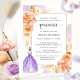 Delight your guests with this beautiful quinceañera invitation in Spanish with delicate purple watercolor stains, exquisite floral elements and beautiful detail with quinceañera in purple dress. Same invite also available in English. Elegant invitation with modern hand written calligraphy elements, and floral frame in blush pink, peach and cream, champagne tones. Ability to add ceremony and reception details. Unique back with soft watercolor stains and on quinceañera on the centre with glittery stars.