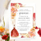 Delight your guests with this beautiful quinceañera invitation in Spanish with delicate red watercolor stains, exquisite floral elements and beautiful detail with quinceañera in red dress. Same invite also available in English. Elegant invitation with modern hand written calligraphy elements, and floral frame in blush pink, peach and cream, champagne tones. Ability to add ceremony and reception details. Unique back with soft watercolor stains and on quinceañera on the centre with glittery stars.