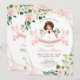 Spanish English Pink Gold Floral Girl Christening Invitation
