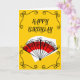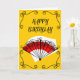 Whimsical design drawn in a retro style featuring a lacy fan souvenir from a Spanish holiday on a golden yellow and white background. A customisable design in black, white, red and golden yellow for you to personalise with your own text, images and ideas. An original digital art image.