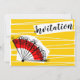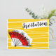 Whimsical design drawn in a retro style featuring a lacy fan souvenir from a Spanish holiday on a golden yellow and white background. A customisable design in black, white, red and golden yellow for you to personalise with your own text, images and ideas. An original digital art image.