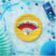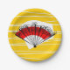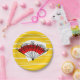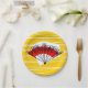 A mid-century inspired design drawn in a retro style featuring a lacy fan souvenir from a Spanish holiday on a golden stripe background. A customisable design in black, white, red and yellow for you to personalise with your own text, images and ideas. An original digital art image.
