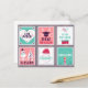 Set of Christmas greeting card designs featuring cute illustrations and sayings in spanish like Feliz Navidad. This set includes six cards with snowman, reindeer and more!