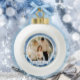 Spanish Feliz Navidad Elegante Azul Holiday Ceramic Ball Christmas Ornament