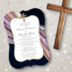 A modern, contemporary first communion design for their big day! The luxe navy and pastel background and the simple typography give this design a classy, elegant vibe.